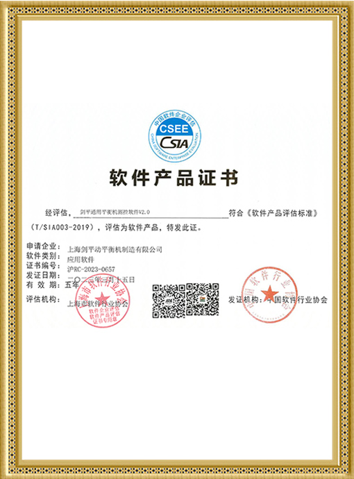 • 軟件產(chǎn)品證書 劍平通用平衡機(jī)測控軟件