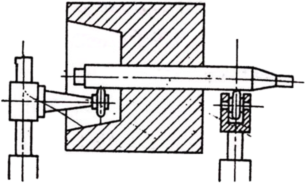 那么我們在考慮上述事項的基礎(chǔ)上,先要選擇適合各轉(zhuǎn)子的通用平衡機(jī),那么對于標(biāo)準(zhǔn)型通用平衡機(jī)不適用的轉(zhuǎn)子來講,大部份的情況是,或者在通用型的平衡機(jī)上附件,或僅做局部改動使用通用平衡機(jī)。如圖所示的轉(zhuǎn)子,如果不加處理的話,就沒辦法裝在通用平衡機(jī)上,如果準(zhǔn)備好特殊懸臂滾子支承,那么這樣的問題就能解決了,與此相同的例子為數(shù)不少。