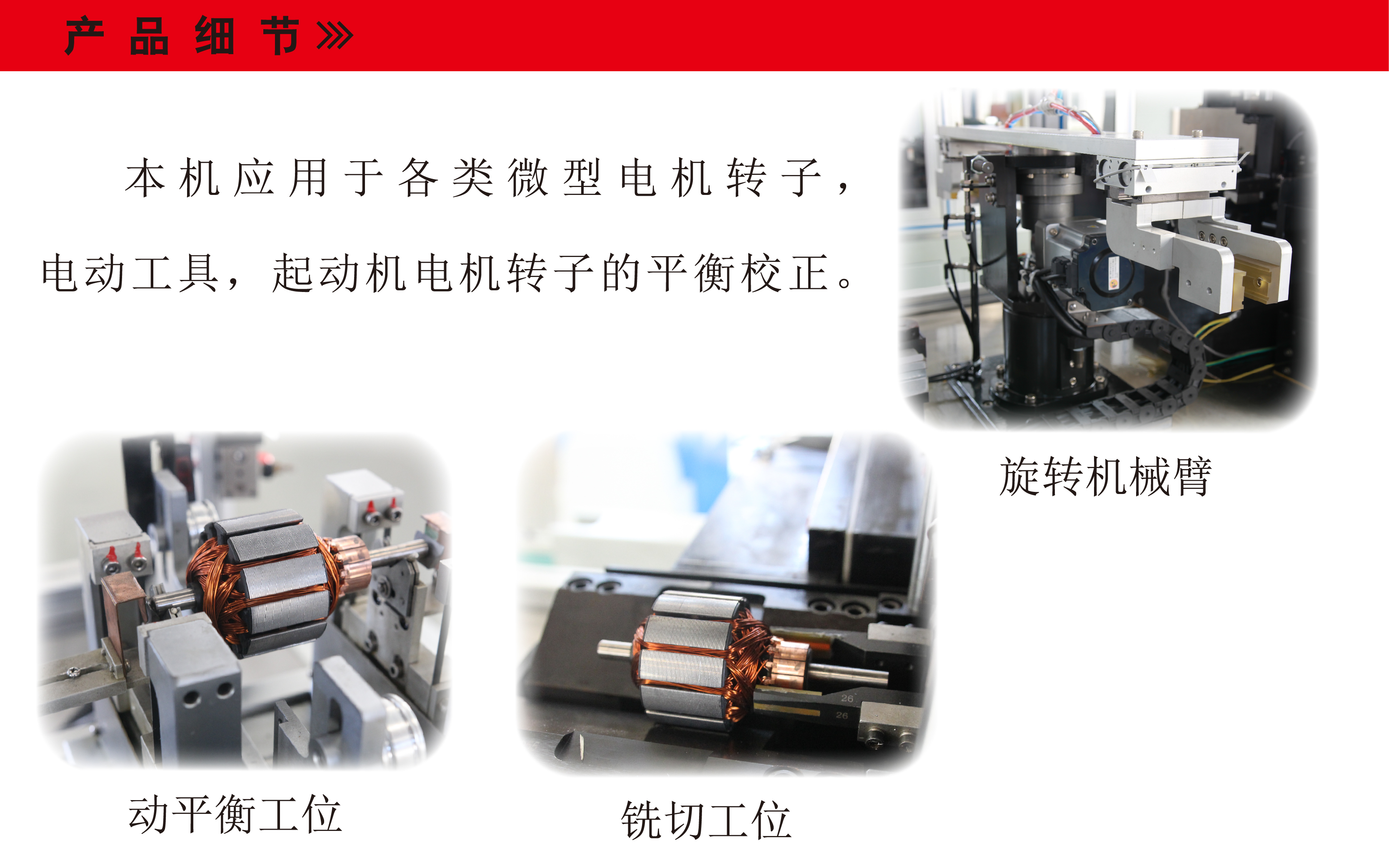 應用于各類(lèi)微型電機轉子,電動(dòng)工具,起動(dòng)機電機轉子等繞線(xiàn)轉子的平衡校正。