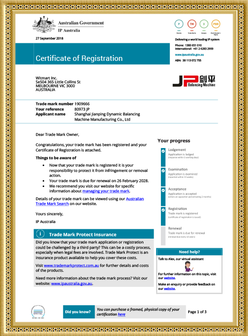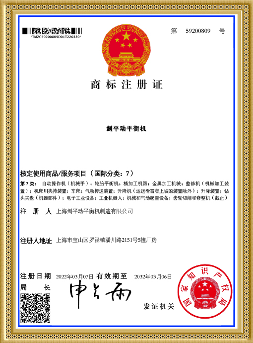 劍平動平衡機(jī)7類商標(biāo)注冊